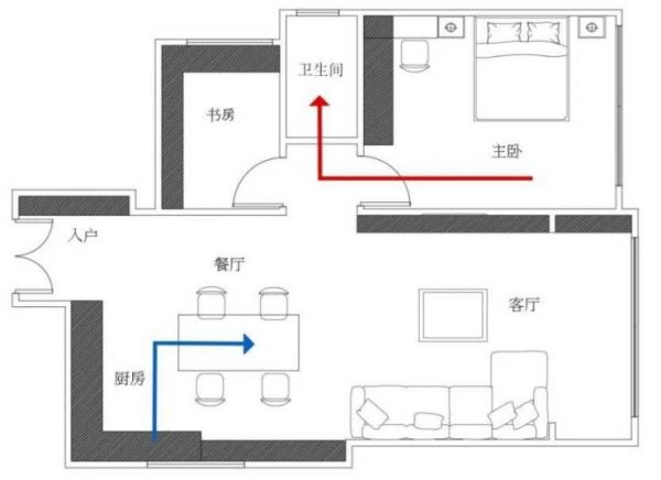 家装设计中,如果动线不合理,入住后我们就会在各个空间反复往返,出现重复率高、路线长的问题,即使宅在家,一天的微信步数都能有个小几百,累啊!所以,在设计动线前,我们需要注意这几个点: