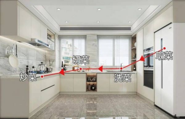 主要注意厨房和阳台这两个区域。厨房根据取→洗→切→炒的顺序来布局分区,提高效率。衣物洗晾最好都在阳台,洗完就可以直接晾晒,一步到位,方便又快捷。