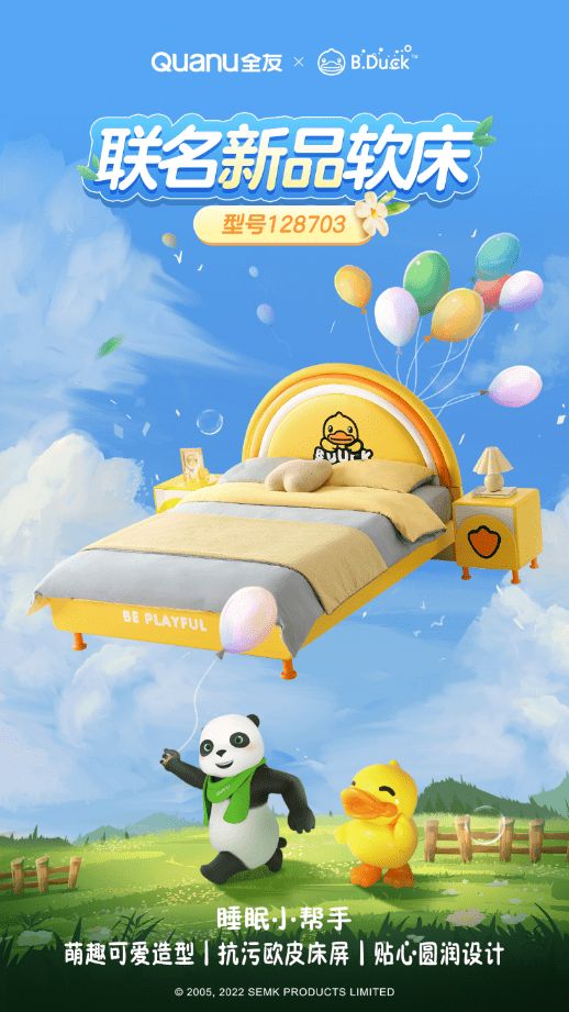 全友家居 X B.Duck小黄鸭联名儿童家具系列新品现已在全友各平台官方旗舰店全面上线,更多联名新品即将推出,敬请期待!