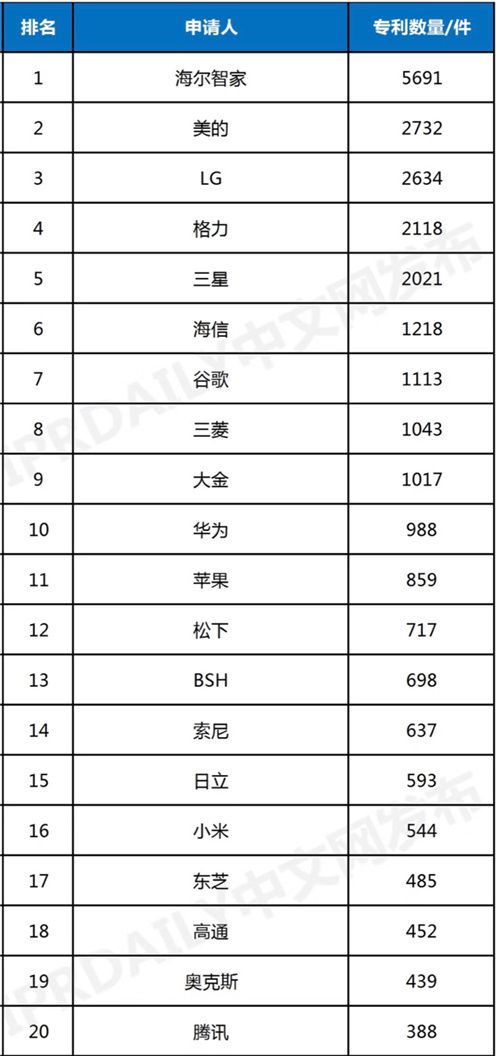 全球智慧家庭发明专利排行榜,海尔智家登顶