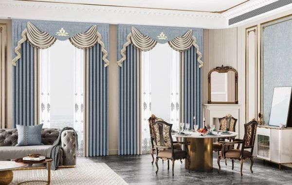 本次泰国展会上展示的刺绣墙布名为《华盈景泰》,是一款经典美式刺绣墙布,整体色调为铅灰色,布料表面花型采用多种刺绣工艺制作而成,使得花朵显得丰富细腻、立体生动。再搭配上领绣新品窗帘《彼岸香舍》,雾感的灰蓝色调与淡淡的奶油色调结合,在光影的变幻下,整个空间显得灵动飘逸,精雕细琢的设计,又给人一种优雅润泽的感觉,营造了华丽浪漫、精致典雅的氛围,将整体软装搭配方案进行完美呈现,赢得了众多参展者的一致好评。