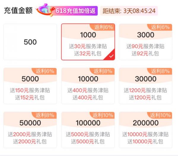 总之,之前平台充值返点在3%-5%左右,这次618特惠活动期间返点直接翻倍成6%-10%,包含服务津贴和50-4优惠券包,不管你是下报价订单还是一口价订单,统统都能用,是不是略微心动了一下下呢~