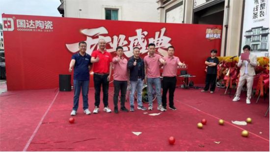 国达陶瓷董事黄玉生先生、国达陶瓷董事黄金平先生、国达陶瓷董事黄盛财先生、国达陶瓷丰硕营销中心销售总经理陈军先生、国达陶瓷丰硕营销中心销售副总经理杨健先生、东阳国达陶瓷总经理陈也平先生以及东阳众多嘉宾和业主朋友们共同见证了东阳国达陶瓷的耀世启航。