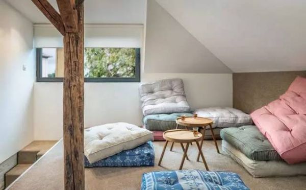 将阁楼变成一个舒适的休息区域,闲暇时可以躺在这里看看书、听听音乐,这是只属于自己的 秘密基地。