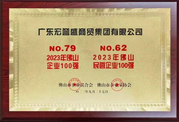 2023年10月10日,由佛山市企业联合会、佛山市企业家协会发布的“2023年佛山企业100强、佛山民营企业100强”榜单上,广东宏誉盛集团赫然在列,荣登佛山企业100强第79位,佛山民营企业100强第62位。跻身强手如云的佛山企业圈,广东宏誉盛集团时刻以发展为圭臬,不断从原材料供应链向后端应用市场战略布局。