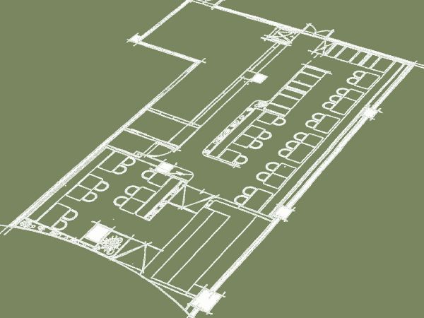 漫游抵达主就餐区,游山玩水、越岭溯溪的野游气息愈发浓郁。苍劲青翠的树木以简化的树干肌理形态与环境相融。