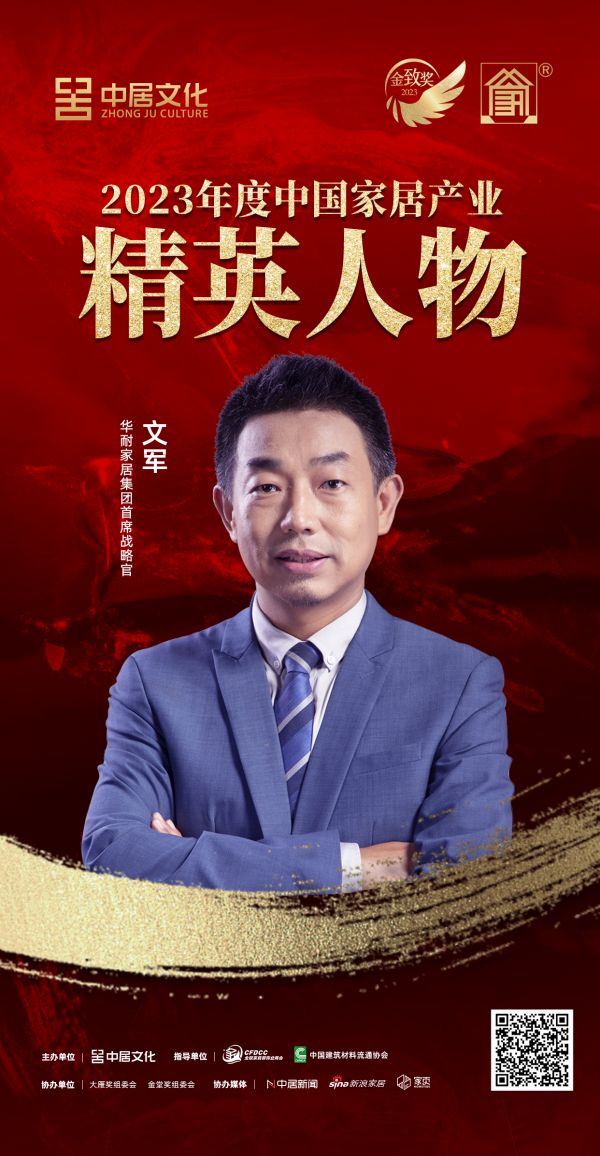 在华北会场的颁奖盛典上,华耐家居集团首席战略官文军在2023年家居行业营销力、创新力、影响力三大维度上引领行业,荣膺本次2023年度中国家居产业精英人物。激发优秀人物引领作用,助推行业健康蓬勃发展,期待华耐家居集团首席战略官文军持续为中国家居行业贡献力量!