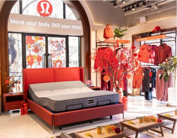 活动当日,特别布置的lululemon东平路店内摆满各式应景花艺,曲折缱绻的花枝,演绎百转千回的别样魅力,恰似人生的各种形态:努力奋进是美,随心休憩亦是美。露营椅和店内放置的Simmons®席梦思新款智能床,营造轻松闲适的“半躺”氛围,让人于忙碌喧嚣的都市角落,偷得浮生半日闲。