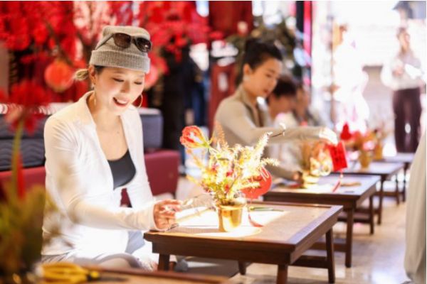写意鲜花编织舒适梦境,枝头的手写福卡打造新年氛围,嘉宾博主于此间静心插花,尝试将花材弯卷成独特形状,恰如从不同角度欣赏生活,感受美的多种面向;更于私密小院围炉煮茶,小火热茶配精致点心,暖意充盈身心,沉浸式体验慢生活的专属仪式感。