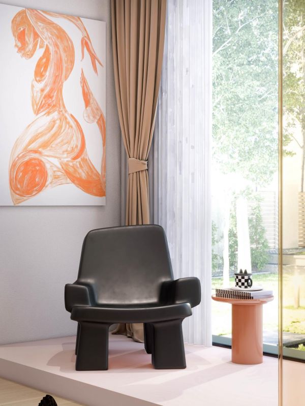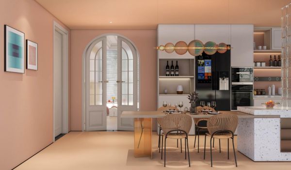 此外,“柔和桃”不仅能与自然木色或白色的家具相搭配,还能与其它深色系的沙发或椅子相配形成鲜明对比,增添空间的层次感,体现主人的个人风格和生活品质。