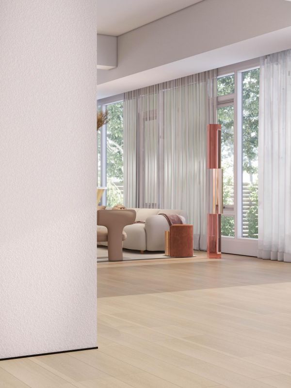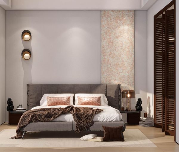 荷兰蔻帝德克拉彩艺系列与“柔和桃”的融合,可以在卧室释放出浪漫的氛围,让人心灵尽情舒展,唤醒对舒适触感和温暖包围感的体验,既是一种想法也是一种体验。如果是选择“柔和桃”色调的床单、被套或抱枕,则可以与更中性的墙面色彩形成和谐的对比,让卧室的整体色彩更加丰富、协调,给卧室营造更私密的情感区域,使之成为放松身心的理想空间。