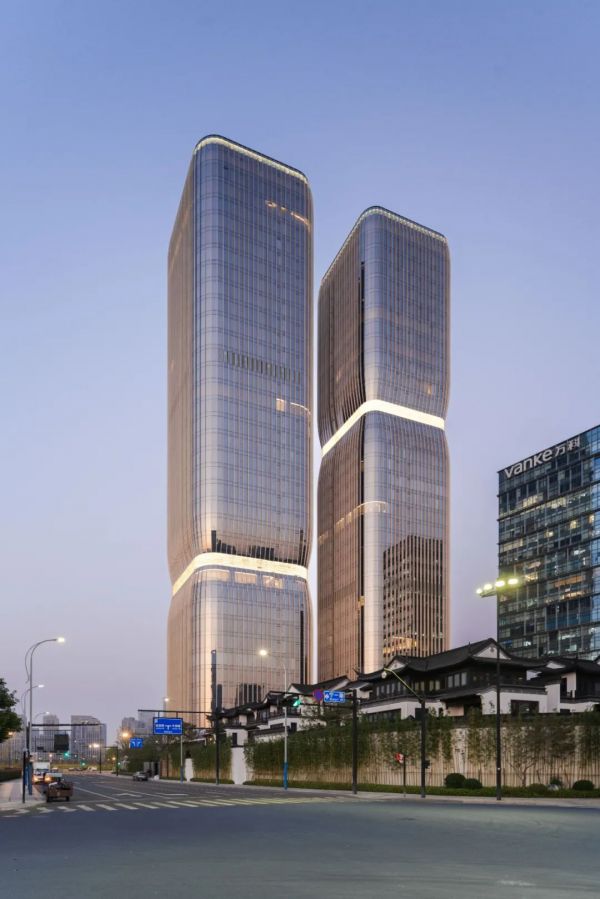 杭州望廷中心从西湖荷香中汲取灵感,以中心对称的双塔,打造藕节般独特的建筑轮廓,中通外直,简练大气,寓意“佳偶天合”。与时代金名片“莲花碗”遥相呼应。“莲”与“藕”相映生辉,赋予望廷独特的艺术气质和文化底蕴。