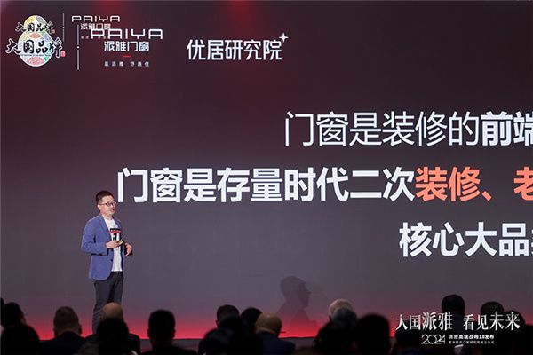 派雅门窗副总经理吴健做《派雅门窗高端战略3.0》的主题分享,他首先指出:“目前的市场已由增量经济变成增量和存量并存时代,派雅实施高端化战略,符合人民对美好生活的向往,符合门窗行业目前发展阶段,符合高质量发展的时代要求。”吴健表示,高端化的本质是价值创新。2024年派雅门窗将以产品高端化、品牌高端化、渠道高端化、服务高端化为着力点,不断思变、突破,从产品精耕、服务提升、渠道拓宽等多维度发力,进一步夯实“深舒适”的品牌定位,形成更大市场竞争力,为行业的高质量发展创造更多新的可能。