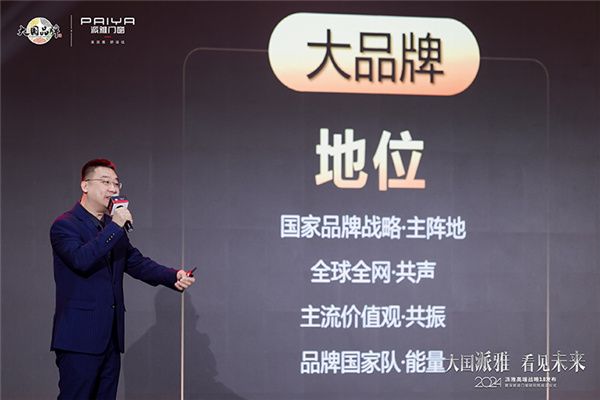 派雅门窗坚持专注于高端门窗定制已有34年,并于2024年三度入选央视《大国品牌》。在2024派雅高端战略3.0发布暨「深舒适」门窗研究院成立仪式的活动现场,《大国品牌》首席策略官王昂杨发表了《大国品牌 派雅未来》主题演讲。