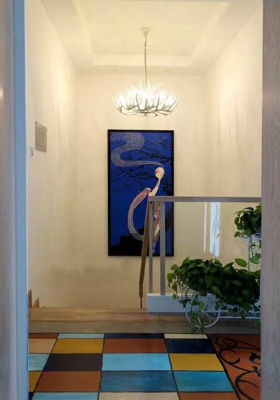 楼梯口拼花地砖时尚漂亮,色彩搭配的丰富多彩。