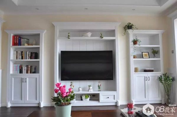 ▲电视背景是三组柜子,中间放电视机,两边放书以及饰品摆件,有待于进一步补充。
