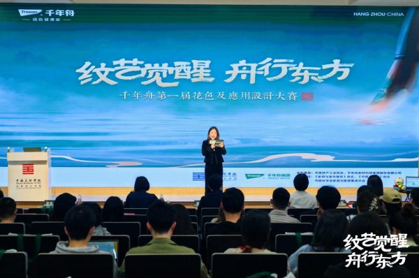 千年舟第一届花色及应用设计大赛以“苏韵”为主题,聚焦设计美学理念,挖掘激发设计创造力,把东吴姑苏文化底蕴之美带至华夏大地第一站。值得一提的是,千年舟与良渚有着不解之缘,在此倾情打造的“纹艺觉醒”IP广受追捧,自主研发的“人文良渚”系列花色也赞誉颇丰。本次大赛高校宣讲选择在中国美术学院(良渚校区)启航,既是由于千年舟与国美同根同源,也是对国美这个“中国现代艺术教育摇篮”的致敬,亦是希望国美之深厚艺术底蕴、锐意设计风尚,为本次大赛书写下绚丽华章。