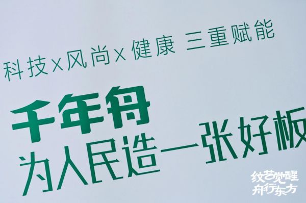 “纹艺觉醒 舟行东方”,是千年舟这两年一直在坚定践行的文化自信。纹,乃纹饰、纹理;艺,为艺术、技艺。通过深入挖掘东方国色、文化要素,在守正创新中构筑华夏文明新气象。这,就是纹艺觉醒。千年舟秉持“为人民造一张好板”初心的同时,一直以来都致力于推动设计创新和产业升级。
