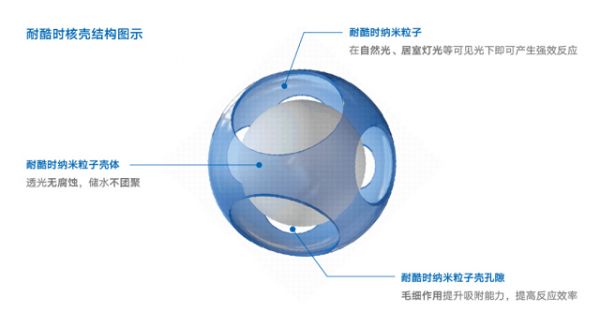 对比传统除醛材料来说,雅琪诺除醛窗帘中的耐酷时纳米粒子激发化学反应所需的能量更少,因此除醛效率更高。与活性炭、硅藻泥等以吸附为原理的除醛材料相比,耐酷时纳米粒子材料不会产生吸附甲醛饱和后反而释放甲醛的情况,与化学试剂除醛材料相比,耐酷时纳米粒子材料更加安全、无毒、无刺激,不会产生化学试剂残留造成二次污染的问题。