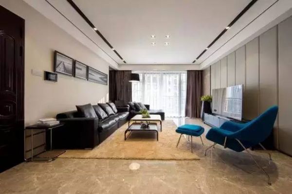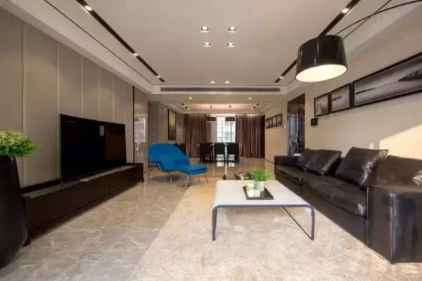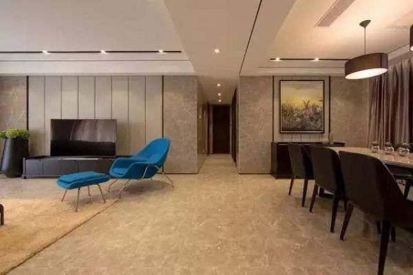 2.客厅与餐厅让整体格局都显得视野开阔了不少,蓝色的沙发椅成了房间的亮点,让房间颜色不显单调。