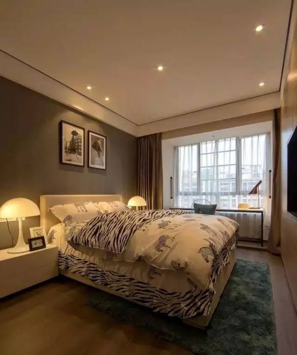 6.卧室布置简单温馨,又有点小俏皮。床铺斑马图案俏皮天真,可爱极了。