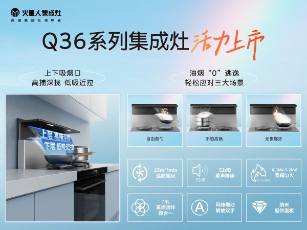 随着生活品质的提升和居住环境的改善,现代青年人对于厨房设备的需求也在逐渐升级。他们不仅希望厨房设备具备高效、实用的功能,还希望其外观时尚、操作智能,能够与自己的生活方式和审美观念相契合。在这样的背景下,火星人集成灶锐意进取,凭借其尖端科技与人性化设计全新推出Q36集成灶,其凭借着独特的设计和卓越的性能,全方面“能打”的实力,成为了众多青年人理想的厨房伴侣。