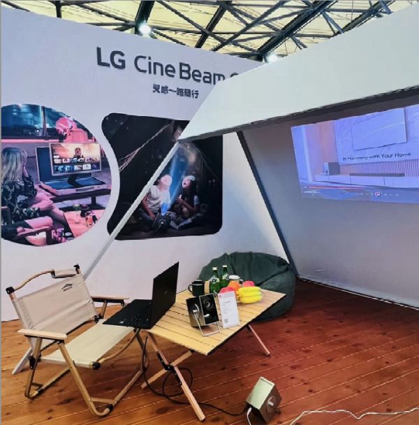 (AWE2024期间,CineBeam Q与LG gram屏影空间组合链接实物展示)
