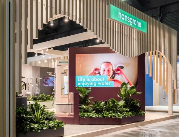 进入展厅,首先是绿意盎然的品牌陈列区,“唤醒感官,焕活新生”—— 汉斯格雅近年来注重为整体厨卫空间带来畅快愉悦的用水体验,今年提出“Life is Waterful”的品牌口号,升级以用水体验为核心的品牌形象。展区主题是由如厕区、淋浴区、洗漱区、厨房及2个整体卫浴套间组成。