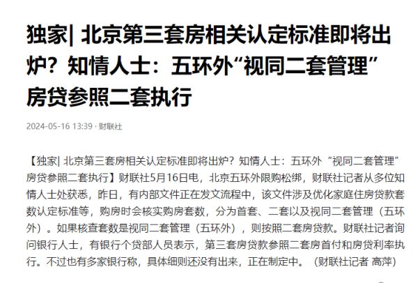 但就具体区域来说,去年本来在去年有落地房山区试点一区一策的计划,但北京市住建委也表示,不仅市委要同意,而且还要争取人行营管部和住建部同意。