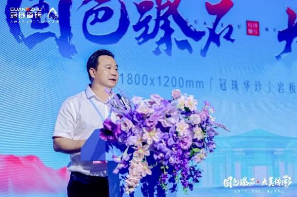 冠珠瓷砖品牌总经理潘瀚对新品进行深入解读与介绍