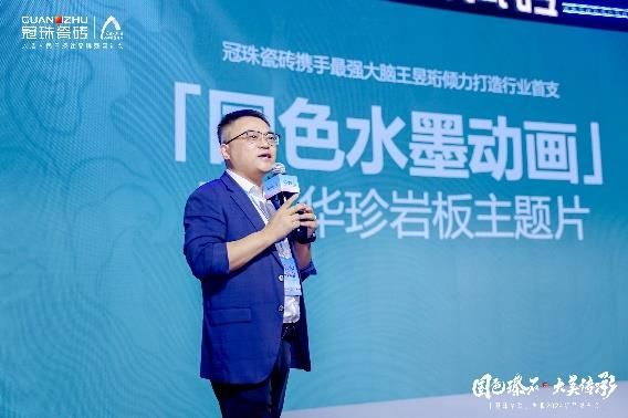 发布会现场,由冠珠瓷砖与冠珠520表白官、质感设计师王昱珩携手共创、行业首支「国色水墨动画」产品主题片同步惊艳首发,对冠珠华珍岩板 7 款新品玄天瑶金、云鹤情诗、松烟入墨、山海碧青、韶粉冰华、云母龙涎、华清凝脂的国色芳华、文化厚度予以生动诠释。