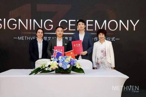 METHVEN麦瑟文与1858高定家居战略合作签约仪式正式启动,由METHVEN麦瑟文中国区总裁Robert Su苏宝基及玫瑰岛副总裁李龙进行签约,METHVEN麦瑟文集团总经理Caroline Sunaryo与玫瑰岛总裁肖杉进行见证。