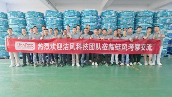 签约仪式期间,链风环境浙江工厂负责人谢锋为洁风团队进行讲解,深入到工厂的生产、研发、质检、仓储等多个环节,诠释了每一个链风产品的背后都有着无数次的设计、推翻与迭代。