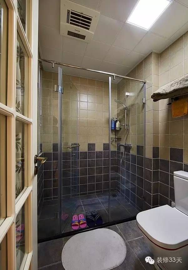 ▲ 卫生间玻璃隔断干湿分离,墙砖上浅下深融入地砖色系
