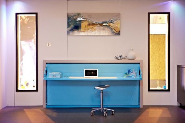 不起眼的蓝色办公桌经过翻转后又是一张小床。