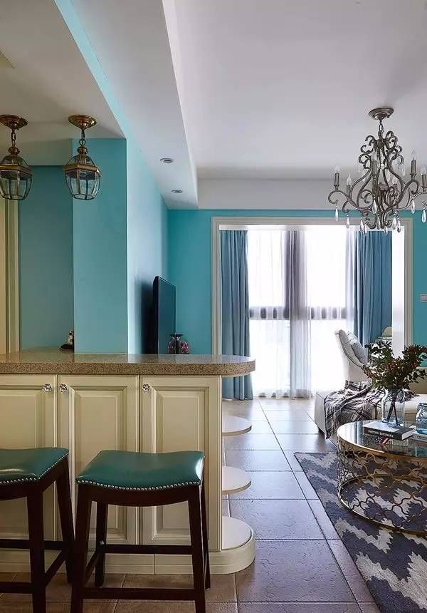 ▲ 一楼以Tiffinay蓝为墙面主色,配合象牙白的家具