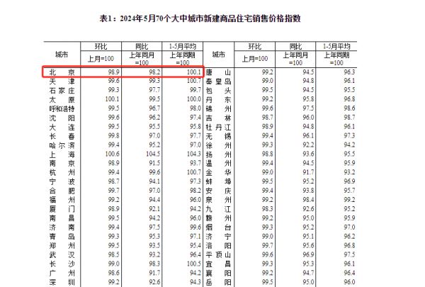 5月北京新房价格环比下降1.1%,同比下降1.8%。