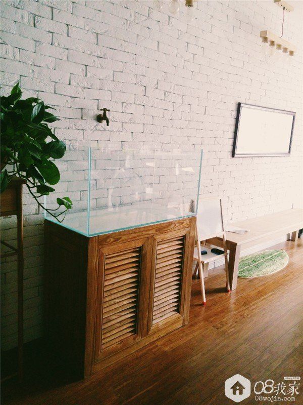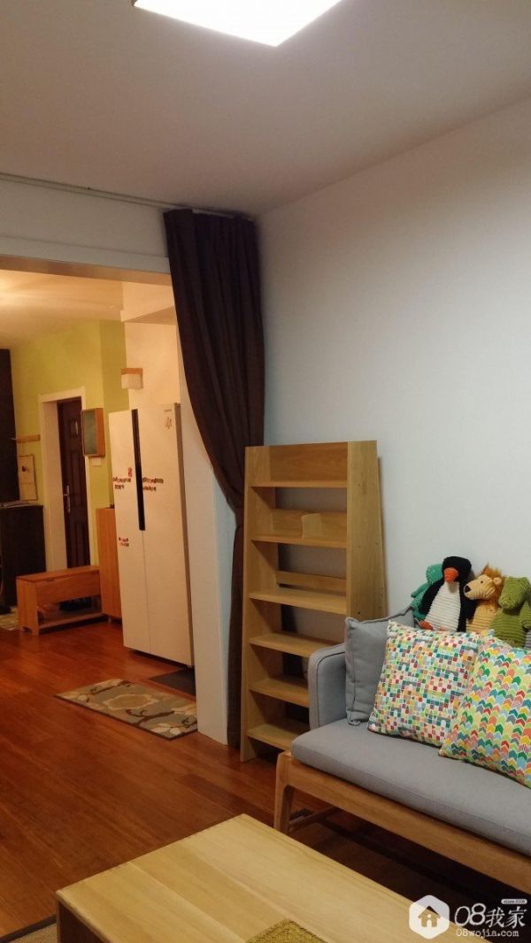 整面的文化石墙,全房的家具是原木的,还算满意,右边到顶的书柜是08团购的。