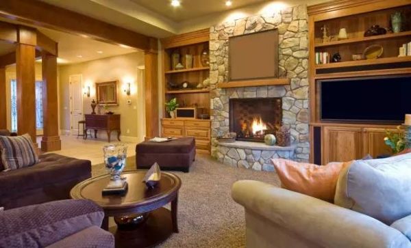 同时在地暖、电暖、空调等取暖方式都已经非常普遍的今天,壁炉在家居中的作用,与其说是取暖的实际功能,不如说是一种象征意义。在寒冷的天气里,围绕着一炉炭火与家人或朋友喝茶闲聊,享受的是温情。也可以自己设计,比如用大块石材砌成简单的方形,粗糙、不加磨砺的表面,让壁炉充满返璞归真的意味,非常适合别墅、豪宅风格的家居。