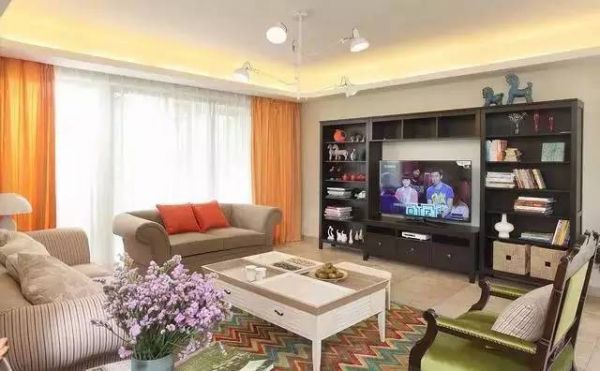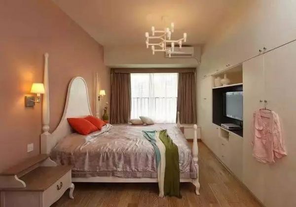 主卧里的电视背景墙就是满满的柜子,很是完美的体现居室的强大收纳功力!