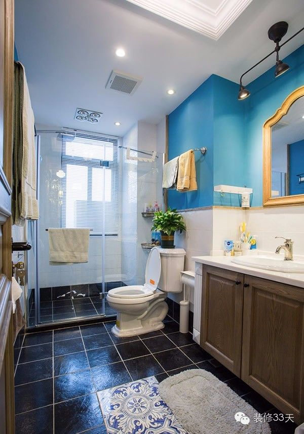 ▲ 次卫色调,上部分采用蓝色漆,下部分采用白色瓷砖