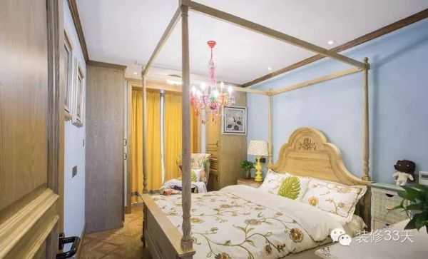▲ 主卧的实木家具和浅蓝色墙面,一盆仿真薰衣草,营造普罗旺斯的味道