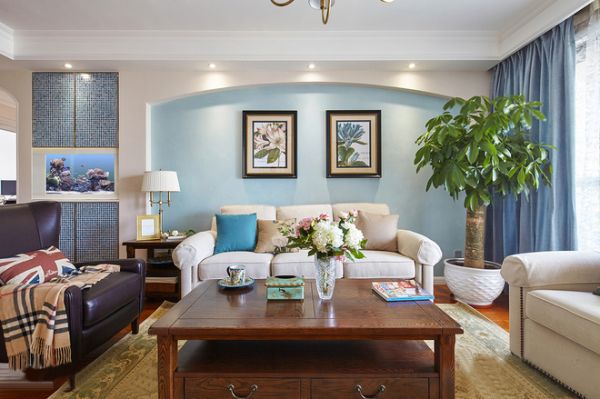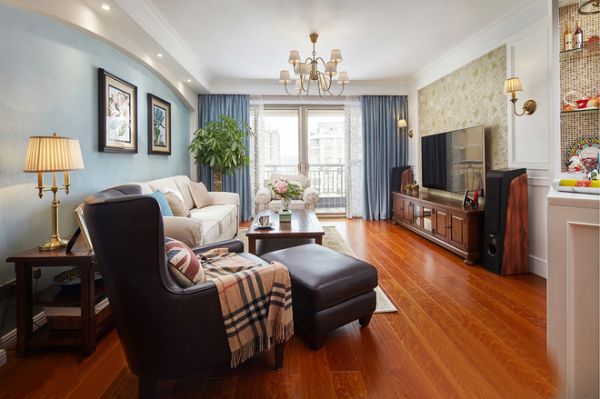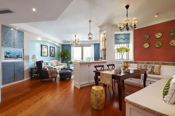 本案是简美风,在色彩的处理上比较大胆,让众多颜色能和谐相处。每一个空间的颜色富于变换多样,色彩在空间分布上、前后位置关系十分的注意,有主又次,不喧宾夺主。浓郁的色调使家居空间温馨而醇厚,更具生活气息,丝毫没有令人不适的压迫感,在忙碌中坐下来,喝一杯咖啡,聊聊点滴生活,香浓回甘中享受安闲。