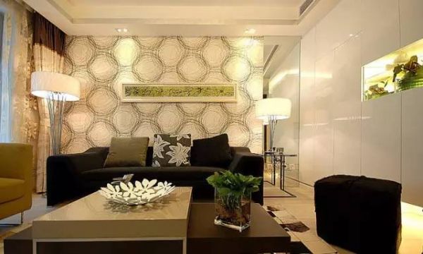 ▲ 沙发背景是抽象的艺术画装点的圆形草图图案壁纸