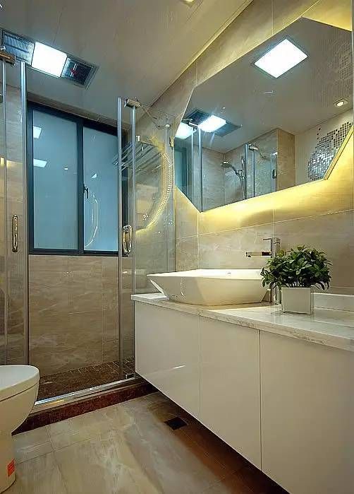▲ 卫生间多边形镜子加上灯光更加时尚
