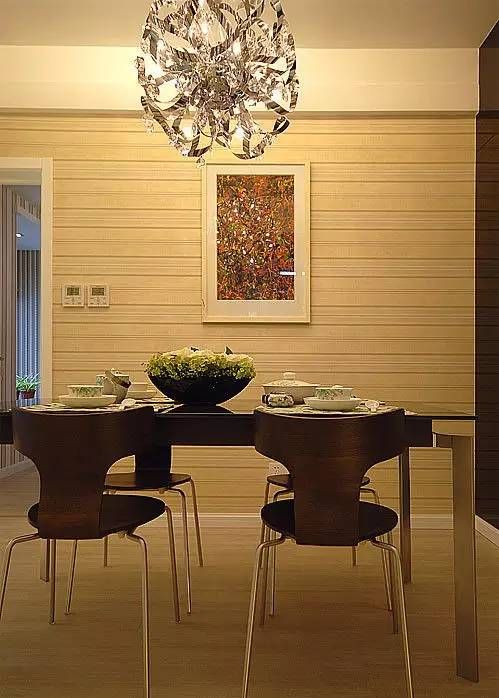 ▲ 采用大量反光材料,黑玻桌面,水晶灯,金属画框
