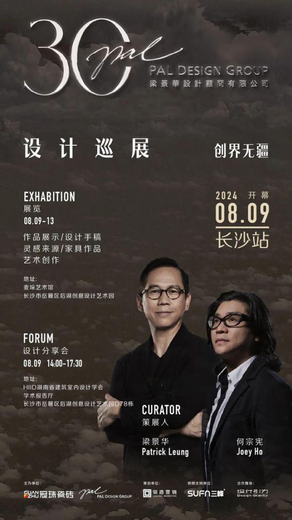 8月9日至13日,冠珠瓷砖携手PAL DESIGN GROUP PAL三十周年设计巡展首站将在长沙开启,与设计大师梁景华、何宗宪老师一块,共品设计美学,共话创界无疆 长沙麦垛艺术空间,期待与您大美相见。