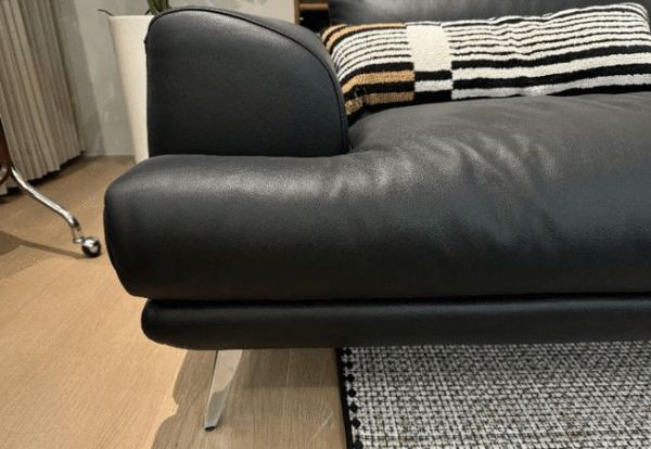 沙发的接触面采用整块头层黄牛皮连接纹路分明,色泽光亮,质感通透,触感丝滑。内由白鹅羽绒和公仔棉填充,柔软度与支撑力都有满足。
