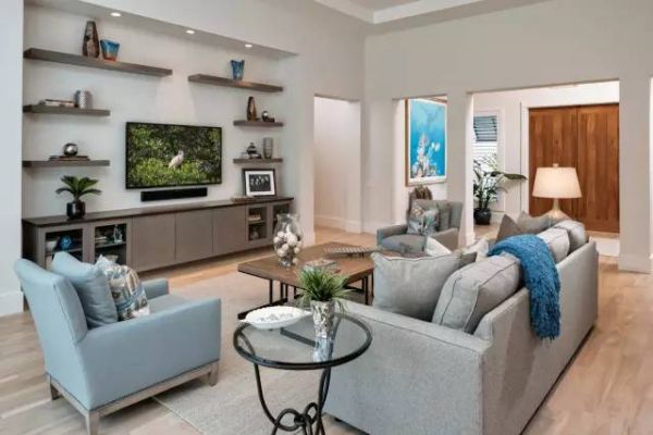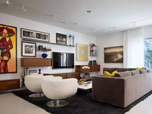 利用各种层架将你家中无趣的电视墙变成有品味的多功能样貌吧。多媒体控制台和电视柜会有感觉沉重的倾向,而且时常限制了剩余的墙面空间。透过平面电视周边经过层架的放置利用,会拥有收藏各种小型多媒体装置的功能,或是展现各种有品味的物品来平衡过于科技感的墙面外观。应该小心选择层架物件,兼顾外观及功能,且不要与墙面上的主要物品-电视有所冲突。