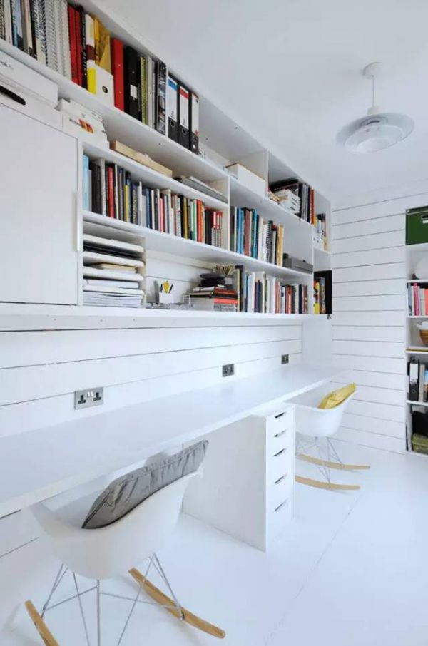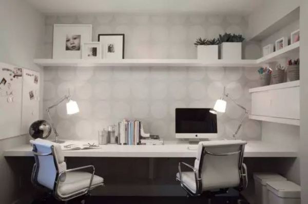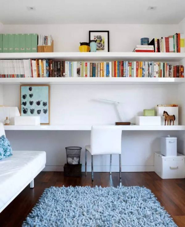 还在烦恼你那没有地方工作的家吗?创造一处动线流畅功能多元的居家办公室比你想像的要容易许多。而且其中一个聪明、实用的方式,当然是利用开放式层架。无论是在你的客厅、卧室或是餐厅,找面墙或角落,有足够空间而且可以水平地放置一张桌子(最小0.7米宽)并整理出至少有超过1米深的座位。在座位上方装好你的桌型层架,并且往上增加你的层架以便取得所需的收纳空间。桌型层架可以用来当作开放式的书柜或下方桌柜,也可以让悬空的部分用来作为墙面托架以放置一些设备。超级简单的DIY与大空间的救星,你也可以让你的新办公室更有风格,使用各种壁纸或在墙面漆上鲜明对比的色彩。